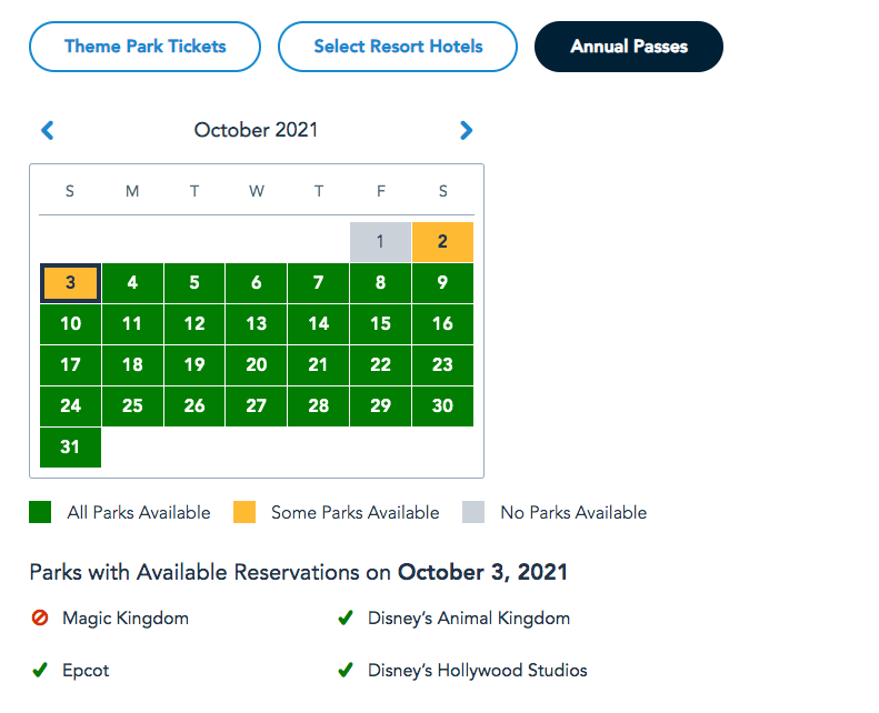 Here’s a peek at what things looked like just yesterday. Previously, Park Passes for some parks were already entirely booked for both Theme Park Tickets guests…