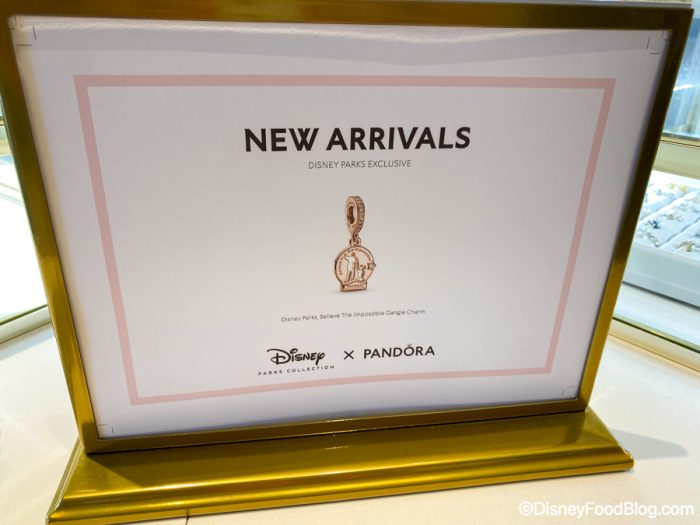 We begin in Legends of Hollywood on Sunset Boulevard, where we spotted some new Pandora items! We found this Disney Parks exclusive Believe the Impossible dangle charm from the Disney Parks X Pandora collection.