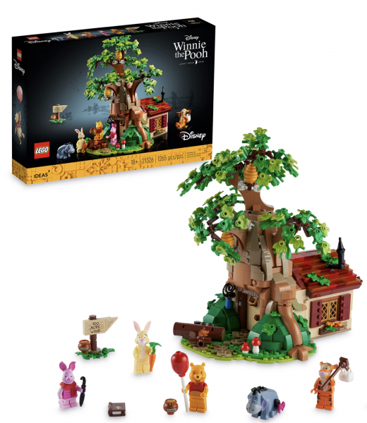 This 1,256 piece set comes with five minifigures of your favorite Winnie the Pooh characters, including Pooh himself, Eeyore, Tigger, Rabbit, and Piglet! And they all have their own tiny accessories.