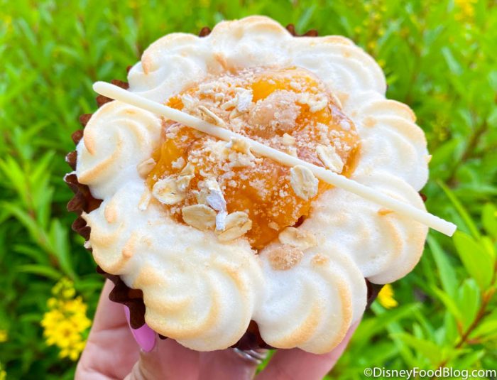 It’s not every day we come across a Peach Cobbler-inspired treat in Disney World, and boy are we glad we found this one! Roaring Fork at Disney’s Wilderness Lodge is a great spot to hit up if you’re looking for one-of-a-kind desserts, and their new Peach Melba Cupcake is a knockout!
