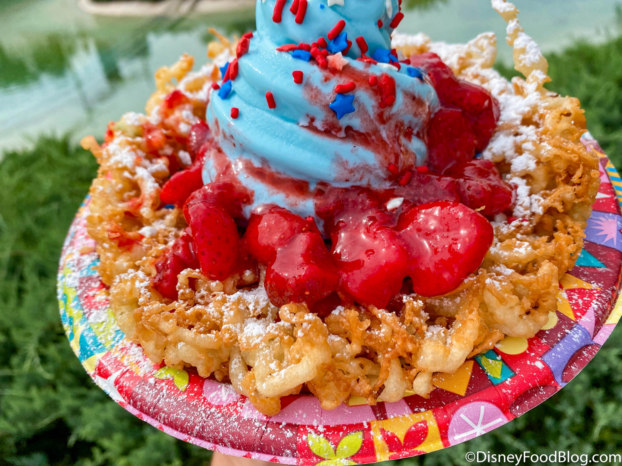 Sometimes there’s nothing better than chowing down on a delicious funnel cake covered in ice cream in Disney World. Over at Epic Eats in Disney’s Hollywood Studios you can some for you and your friends and family to enjoy. We’ve seen some special, themed funnel cakes come to this spot in the past, and today we found another one!