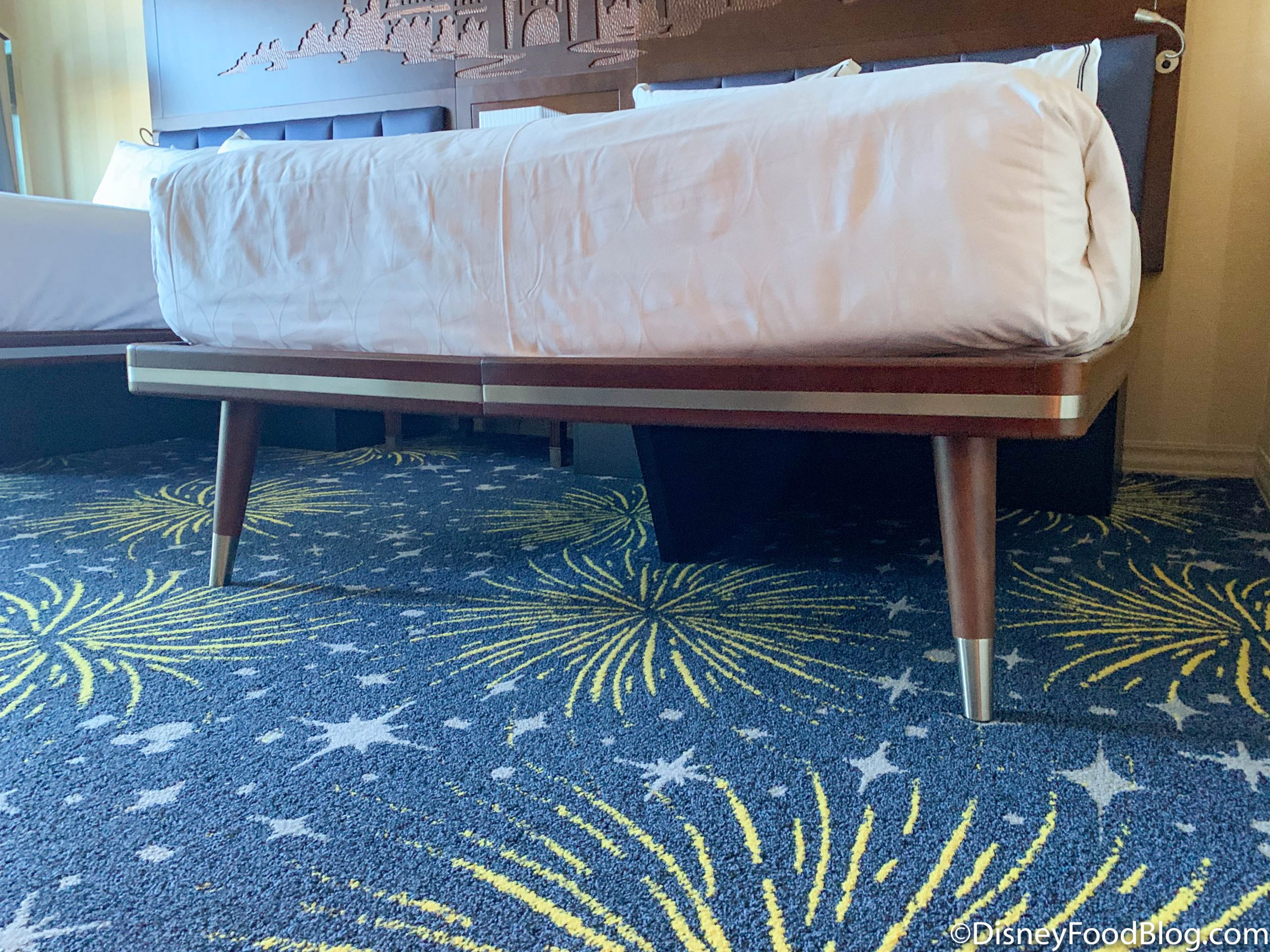 Previously, Disney announced that some changes had been made to the rooms at the Disneyland Hotel, as well as other guest areas. The guest rooms now have a new fireworks-inspired design in the carpet. There are also upgraded platform beds in the rooms to help guests maximize storage.