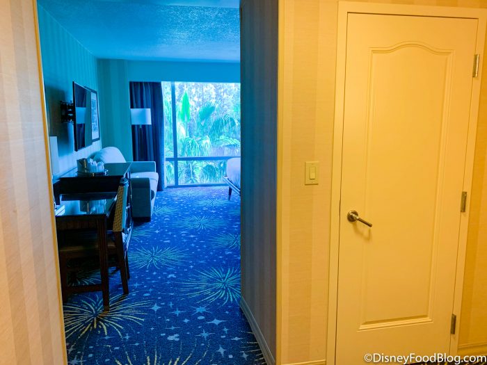And here’s a look at those two main beds and the main room space. While the large back headboard has remained the same, with that gorgeous fireworks design, there are some updated linens on the beds.