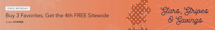 Act quick! This sale is only around until Monday, July 5th, so grab your items ASAP! Just use the promo code 4THFREE at checkout to get your discount.