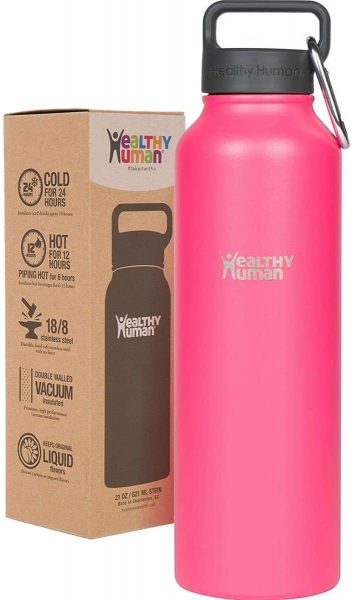 We also highly recommend one accessory for this water bottle, the Healthy Human FLIP N SIP Stein Lid. Basically, this keeps your lid locked so that you don’t have any accidental spills. This is VERY important if you’re carrying this around in your day bag.