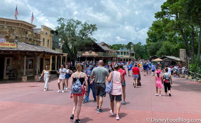 Over in the Magic Kingdom, we can see the crowds filling up Main Street, U.S.A. but nothing out of the ordinary and no more crowds than a usual summer day.