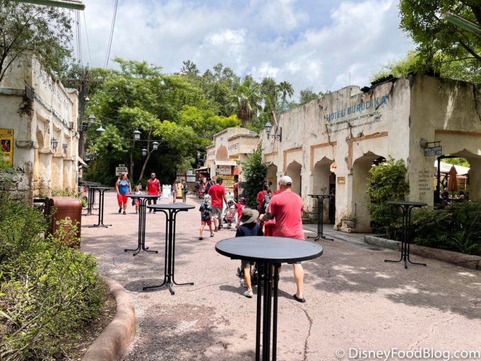 Over near the Harambe Market, we continued to see lower crowds as well. We did notice that there were more tables out than usual!
