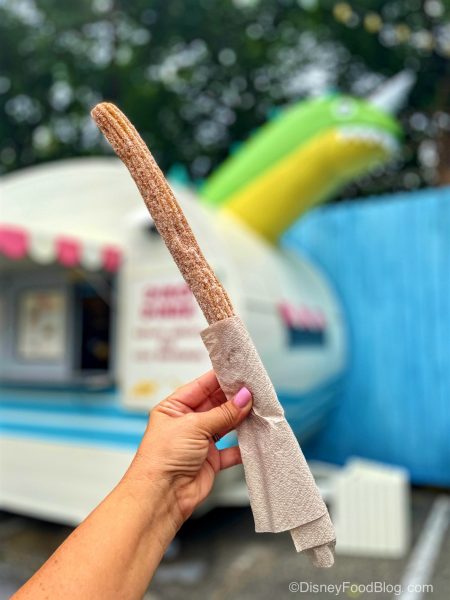 And oh…did we mention the chocolate sauce? It was thicker than we remember, but it paired very nicely with the churro! Instead of coming in a pre-packaged container, the chocolate sauce came fresh in a little cup.