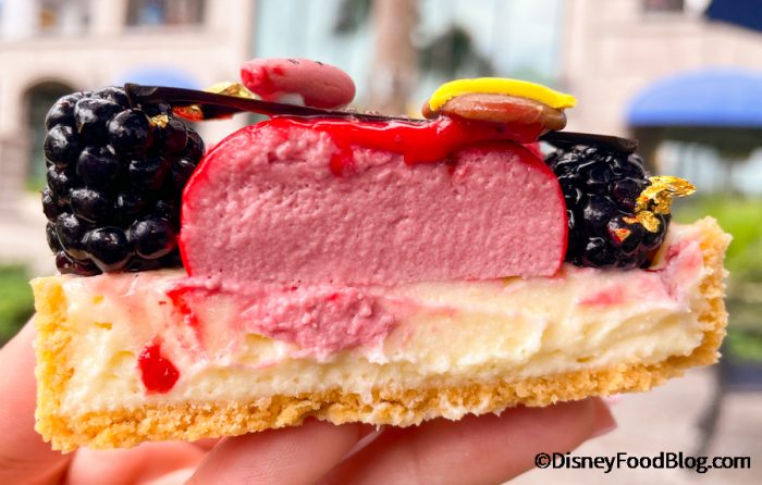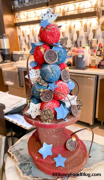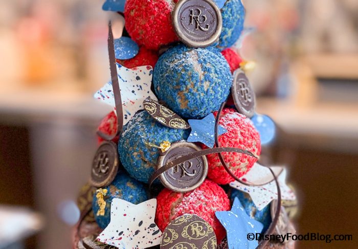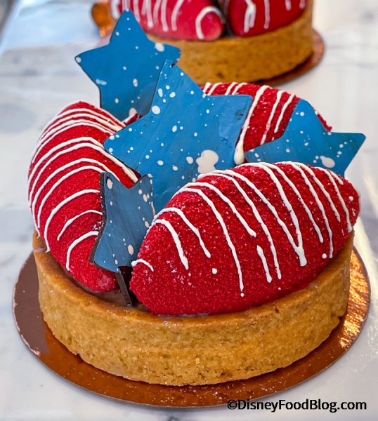 But those treats have got NOTHING on the desserts we just found at Le Petit Cafe at Disney’s Riviera Resort. Le Petit Cafe goes HARD on the holidays, and today is no different. These snacks are SCREAMING patriotism with their red, white, and blue makeovers. We did get one of these, too, but first, we just have to show you these UH-MAZING snacks.