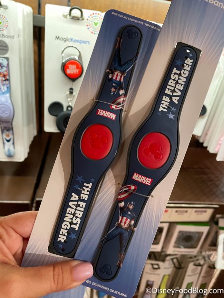 At Riverside Depot, we found a new Captain American MagicBand! “The First Avenger” MagicBand costs $29.99.