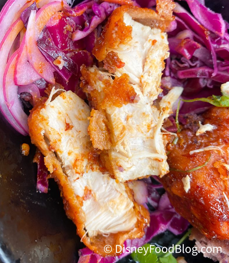 We were actually surprised at how much heat this dish had! Typically, Disney World’s “spicier” dishes aren’t that spicy at all, but this one definitely had a decent kick to it!