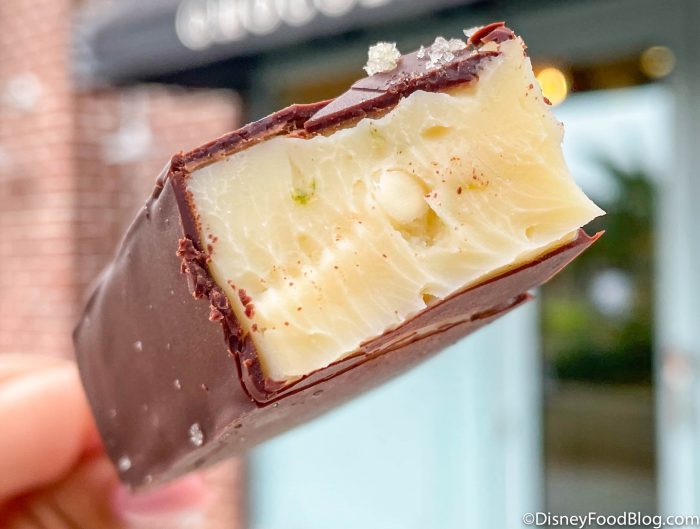 Next up is the Orange Bird Ganache Square! Note that this isn’t listed on the Flavors of Florida guide as an item specific to this event, but it definitely has some fresh, citrus flavors in it so we had to give it a try (plus, it’s Orange Bird)!