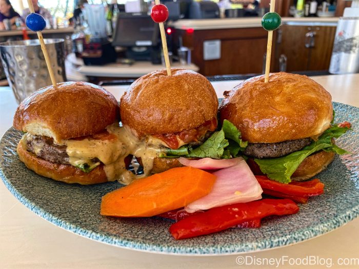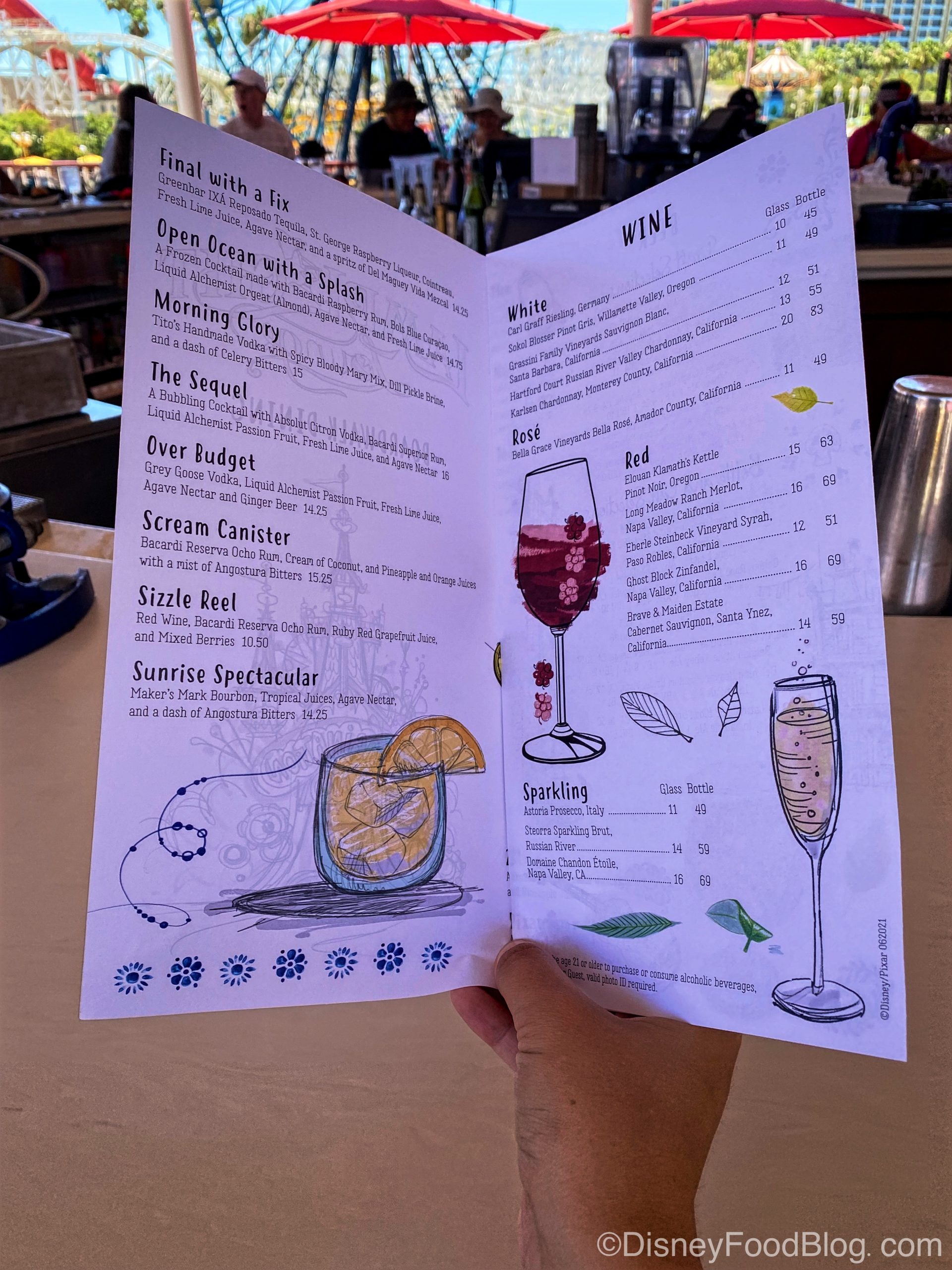 This is definitely a great spot to eat in Disney’s California Adventure! Great food, excellent service, beautiful view, and a nice laid-back atmosphere make this the perfect retreat from the hustle and bustle of the parks! The only complaint we have is the price of the sliders, and that’s not even that big of a deal. However, all the food we got was amazing and perfect for sharing. There are plenty of great options for drinks and kids’ food so we definitely recommend this spot!
