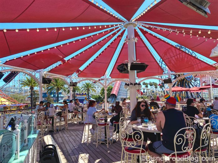Located right at the entrance to Pixar Pier and the bridge to the Paradise Gardens Park section of California Adventure, the Lamplight Lounge has a beautiful location overlooking the water!