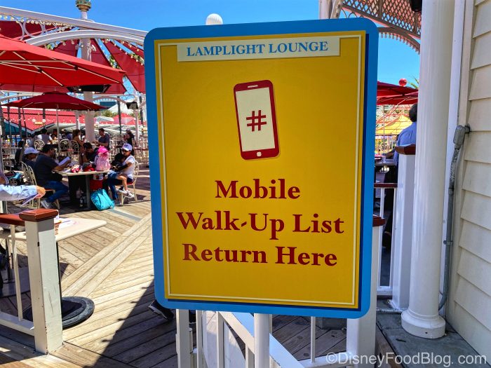Getting a table is as easy as joining the mobile walk-up list on your phone! Using the Disneyland App, we added ourselves to the walk-up list and waited for our notification to come back and be seated! It only took about 30 minutes to get a text.