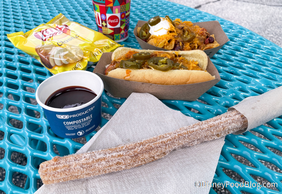 Over at Disneyland, we also checked out 2 newly reopened spots. First, we stopped by Refreshment Corner in Disneyland Park, which reopened with a SPICY new hot dog.
