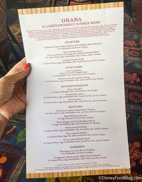 …and the allergy-friendly menu.