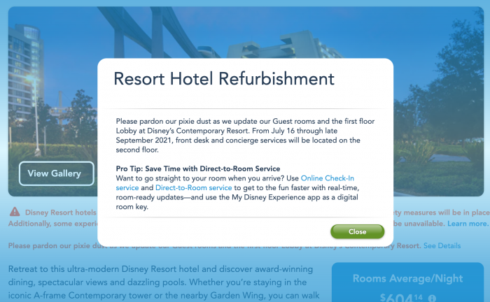 The Contemporary will direct guests to the second floor instead of the front desk and concierge. Guests can also use the online check-in and direct-to-room service, which you can find on the My Disney Experience app!