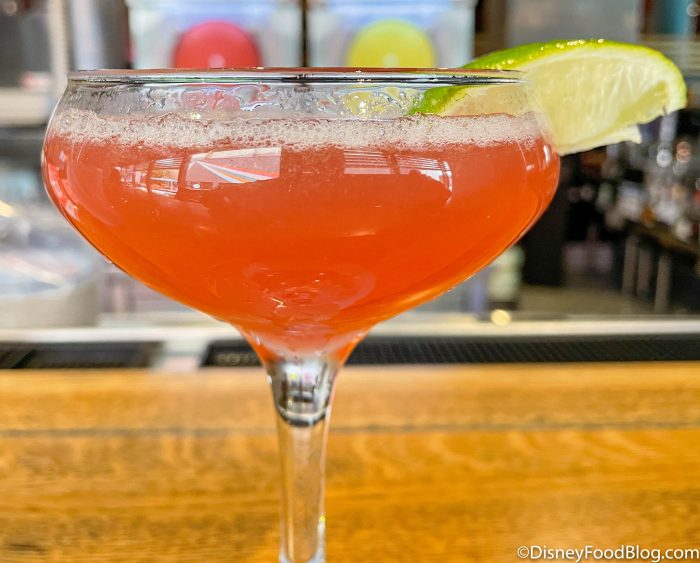 Next, we move to the drink that the Bamboo Bar has listed as a Flavors of Florida offering — the Hemingway Daiquiri. This drink is made with dark rum, maraschino liqueur, fresh lime and grapefruit juices, and splash of house made grenadine, and is served in a coupe glass.