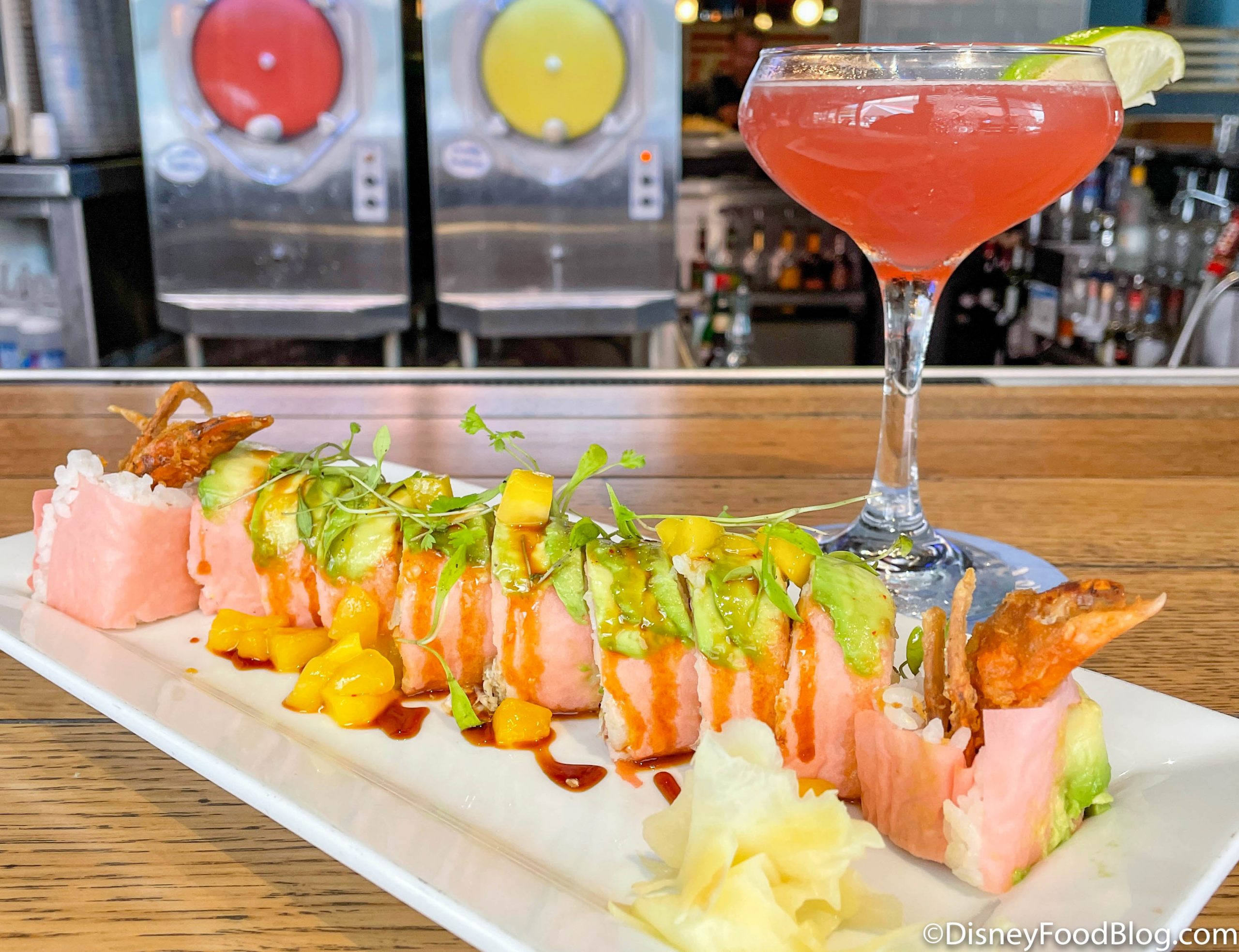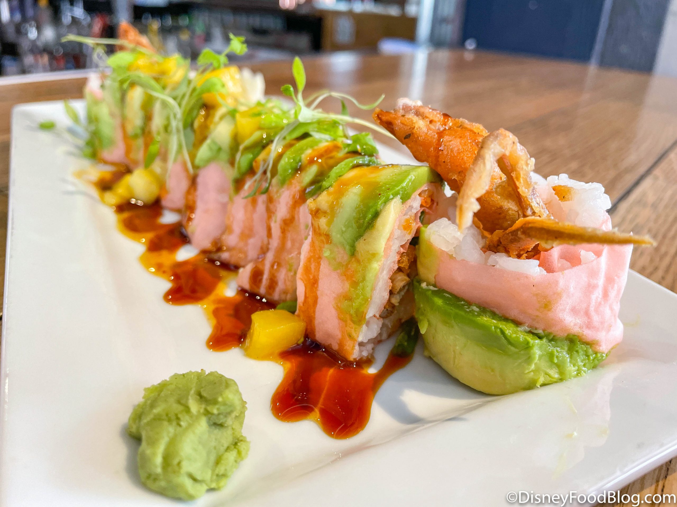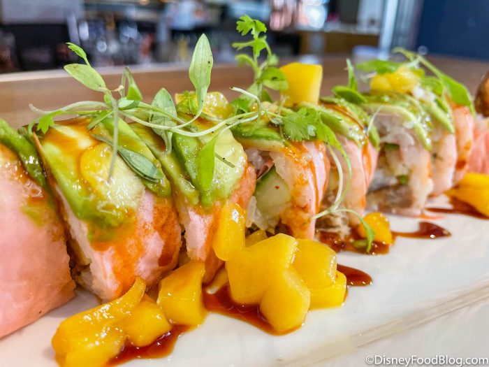 During this event, you can get all kinds of limited-time eats inspired by the Sunshine State at various restaurants in Disney Springs. So far, we’ve had fried gator, frog legs, an orange blossom cupcake, and MORE! Recently we stopped by Splitsville’s Bamboo Bar to check out their offerings for Flavors of Florida, and we have a feeling sushi fans will REALLY enjoy one of them!