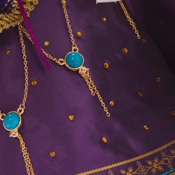 Her dress has some beautiful details — just look at the embroidery and jewels on that dress!