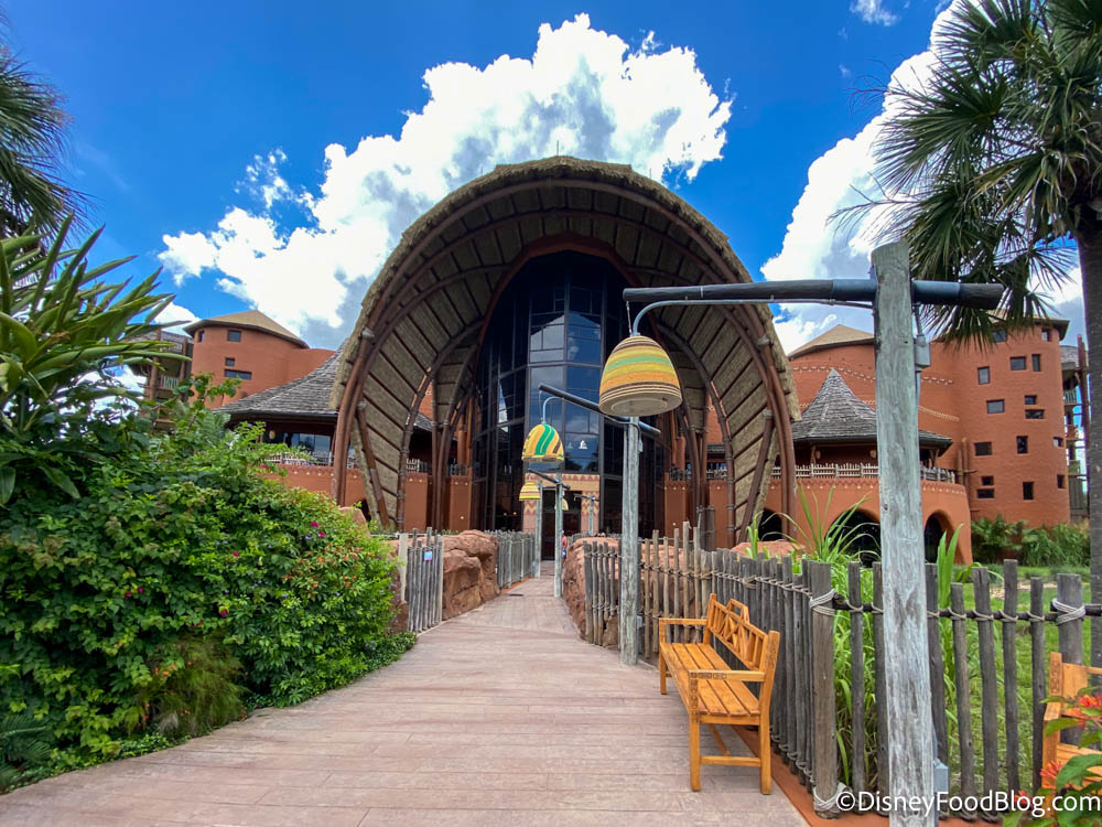 …go through the lobby and down the stairs at the back, and then into the entrance of Sanaa! It’s pretty tucked away, but the food here is worth the search! It can be a little tricky to get to Animal Kingdom Lodge since it’s located a little out of the way. Every Disney park has a bus that goes to the Lodge, and if you’re at Animal Kingdom it’s not too far of a drive! Just make sure you budget enough time for the bus ride if you’re coming from a different park, because — like Animal Kingdom itself — the Lodge is further out than most resorts.