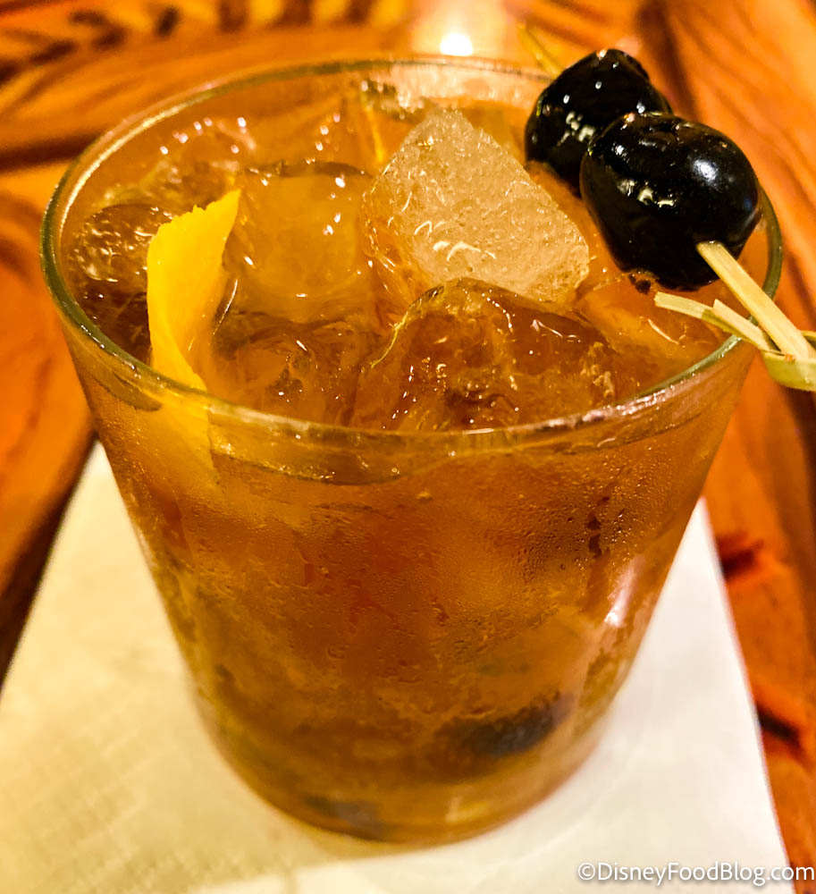 There were a lot of tempting drinks! We chose the Malawi Mango Margarita and Bain’s Old Fashioned! Alright, you caught us, neither of these is actually on the menu…but you can still order them! First up is the Bain’s Old Fashioned!
