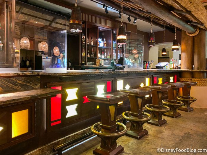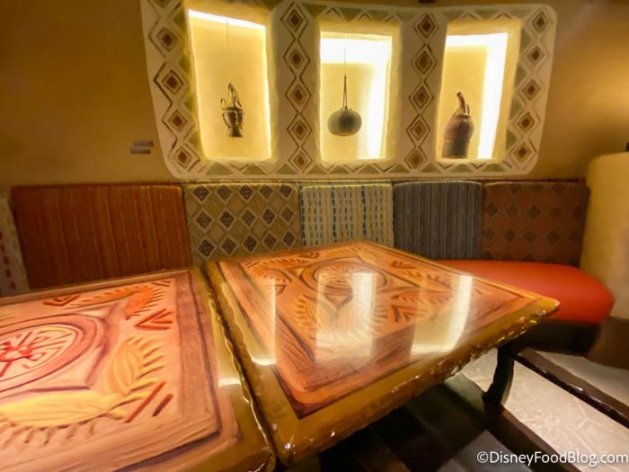 So why ISN’T everyone beating down Sanaa’s doors to visit the lounge? Well, Animal Kingdom Lodge really is quite a bit out of the way unless you’re already in Animal Kingdom or staying at the hotel. Also, the lounge is SMALL, only holding a couple tables. We can’t forget about those incredibly limited hours to score one of the two tables as well. With restrictions still limiting guests from sitting at the bar, it makes this lovely space not as functional as it was without restrictions.