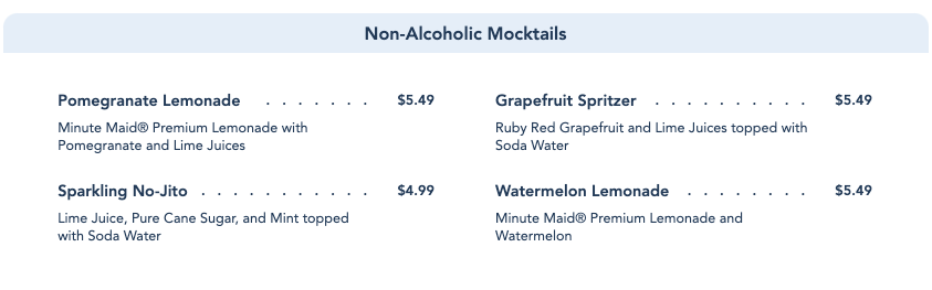 …and some non-alcoholic mocktails, including Pomegranate Lemonade, a Grapefruit Spritzer, Sparkling No-Jito, and Watermelon Lemonade!