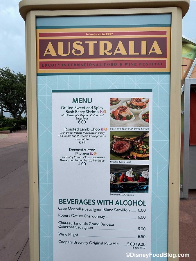Today as we were visiting EPCOT we noticed some new additions to the Food and Wine Festival Booths that were not there before. Disney added menus with prices around most of the booths around World Showcase! We made sure to grab some first looks for you so that you can continue to plan your trip to The EPCOT Food and Wine Festival this year! Let’s take a look!