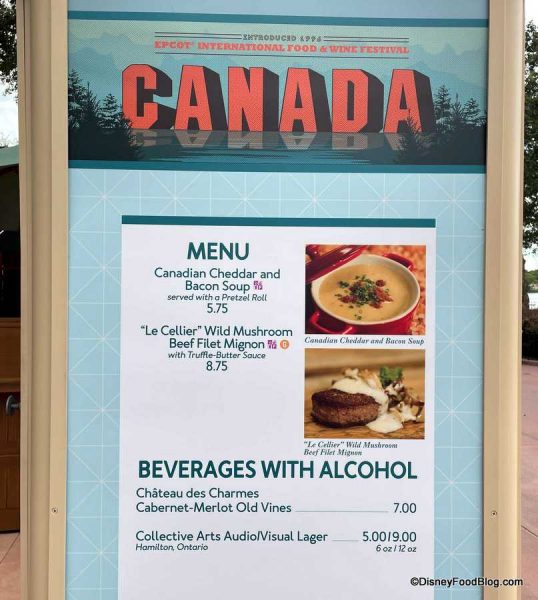 After this very welcomed pit stop, we were able to take a look at the menu for the Canada booth.