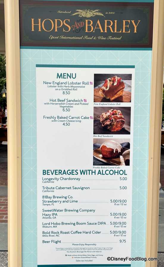 Making our way over to the American Pavilion, we stopped at where the Hops and Barley booth will be located and took a look at their menu as well!