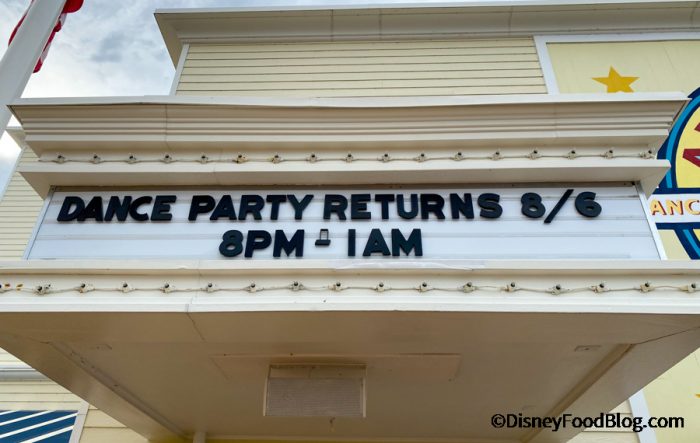 Although the Disney World website does not yet have hours listed for the nightclub, the marquee reveals that the dance party returns on that date from 8PM to 1AM.