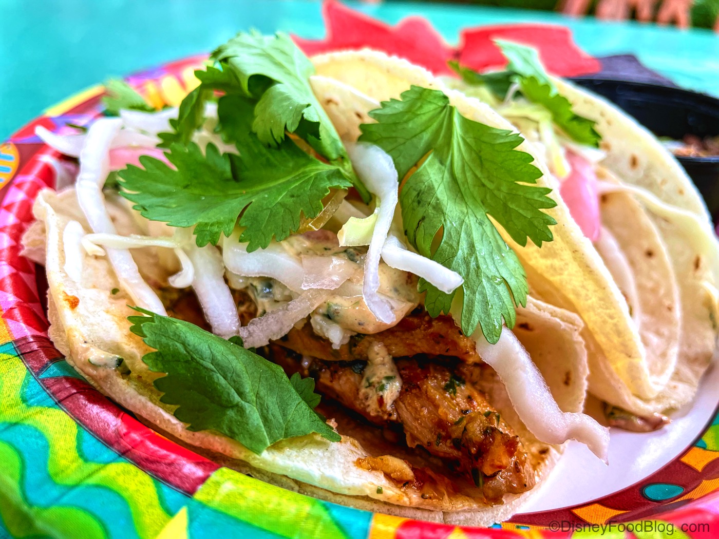 If you’re looking for some good street tacos and great chips and salsa, the Smiling Crocodile is the place for you! The Island Sunrise was a refreshing drink, but needed a good stir! The Street Corn Tacos had a great balance of flavor and just the right amount of spice and freshness. The Chicken Street Tacos were spicy but really delicious! The chips and salsa were fresh and really well done. Overall, this was a good place to grab some tacos and a drink! However, if you’re looking for the Pulled Pork Jelly Doughnut that used to be here, head over to Eight Spoon Cafe nearby. If you still want a quick bite but aren’t feeling tacos, check out Trilo-Bites and Dino Diner in Dinoland, U.S.A. Most guests would pass by this location, but if you’re a taco fan, we recommend giving it a shot!