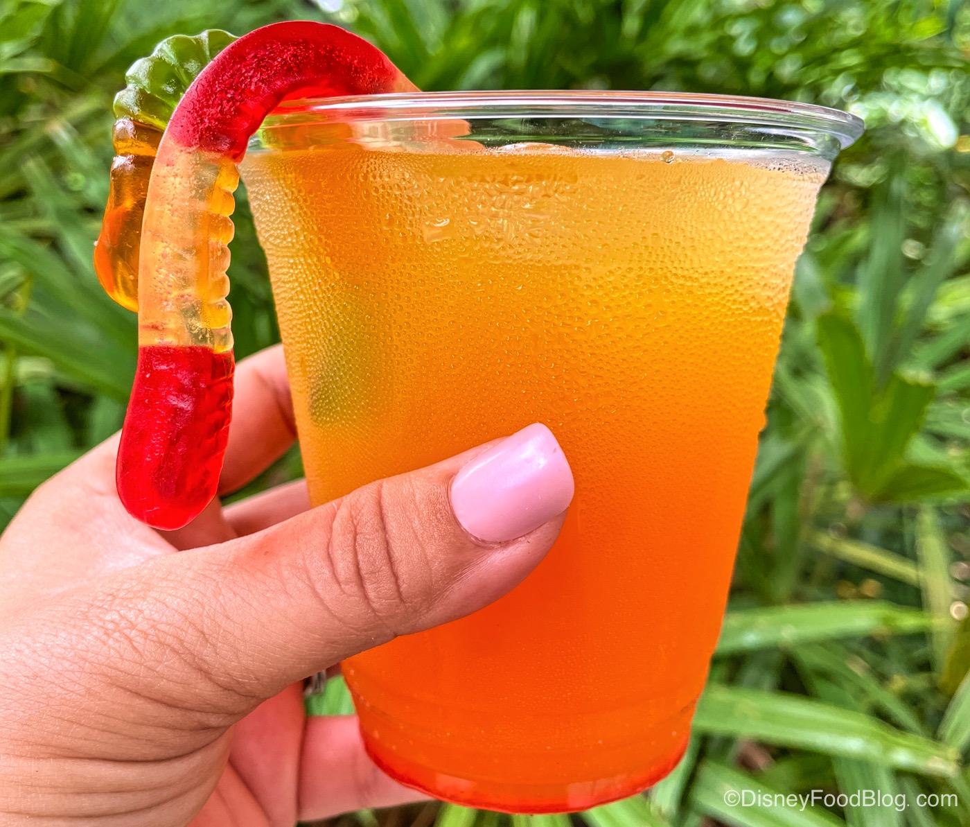 First, we got the Island Sunrise featuring Jose Cuervo Tequila with Pineapple-Orange-Guava Juice and a hint of Watermelon for $12! This is the same drink that you can find at Tusker House and it’s pretty good. Tusker House is a table-service, so this is a good way to grab this drink quickly! It’s also topped with gummy worms, and as you can tell, one of them was not having it today!