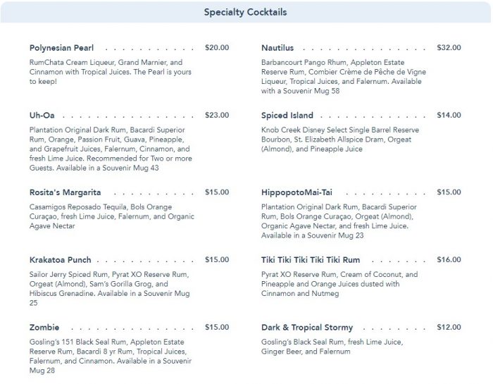 The only cocktail change is that the Shrunken Zombie Head cocktail has been renamed the Zombie. As for other alcohol? There have been a few changes to the beer and wine menus.