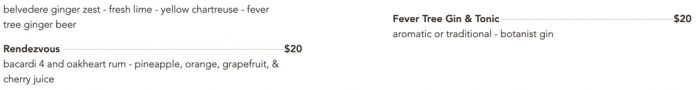The Cocktail menu is robust (notice the use of wtrmln wtr in a few drinks? Those darn vowel keys acting up again! 😂). They also have a selection of beer and wine available.