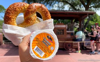 magic kingdom churro wagon pepper jack pretzel with cheese at MK churro cart By Sara McOmber Leave a Comment