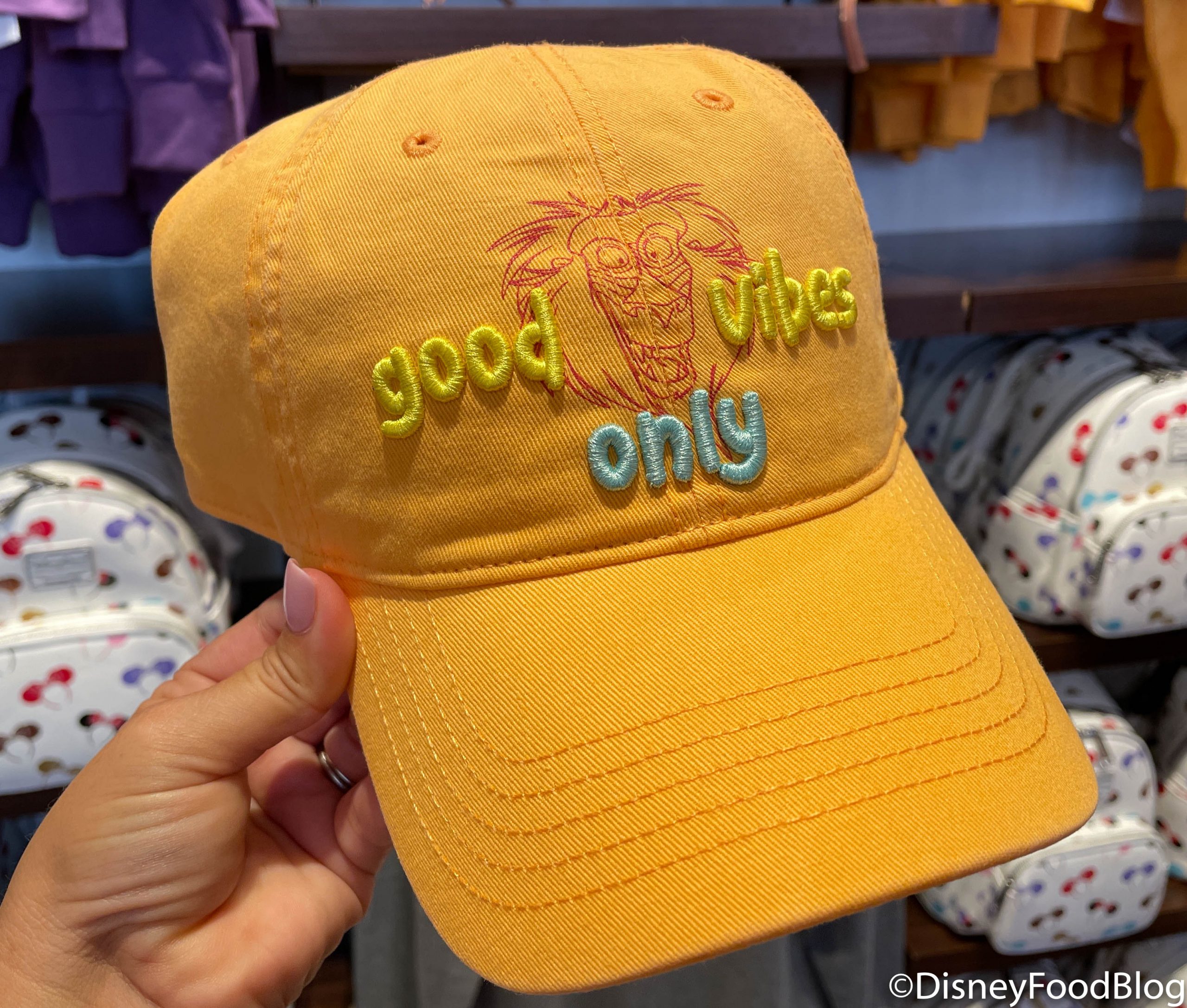 Since each visit to Disney World brings something extra special, you can enjoy those “good vibes” with the Lion King Hat! The yellow hat features Rafiki on the front…