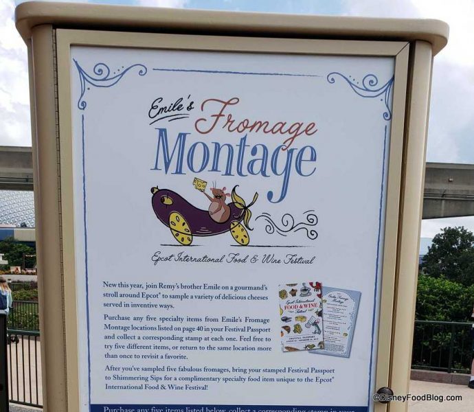 For Emile’s Fromage Montage you’ll need to get the 5 menu items at the various Food & Wine Festival booths that are part of the cheese crawl. Be sure to get the stamps on your Festival Passport to indicate that you’ve gotten each of these items. You’ll want to grab those stamps when you get your food at each of the booths.