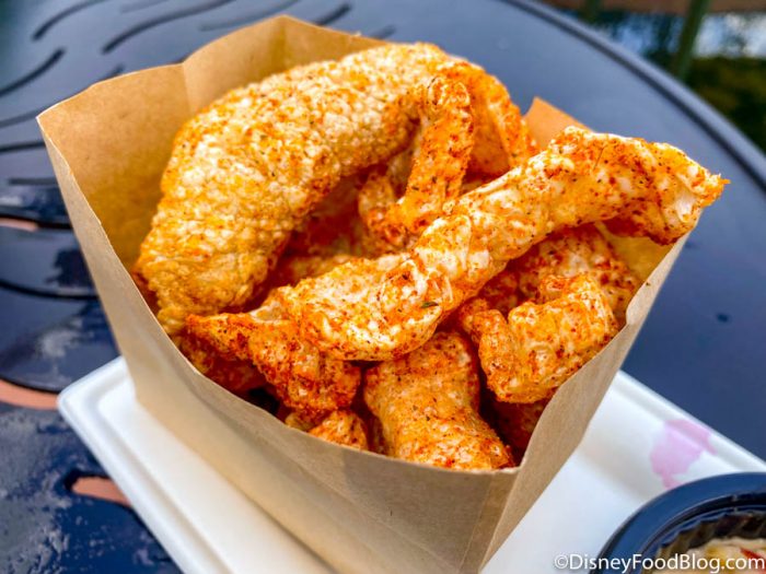 OH BOY, these were SPICY. They remind us of the pork rinds you can get a Ronto Roasters in Disney’s Hollywood Studios, but seriously, they’ve got heat!