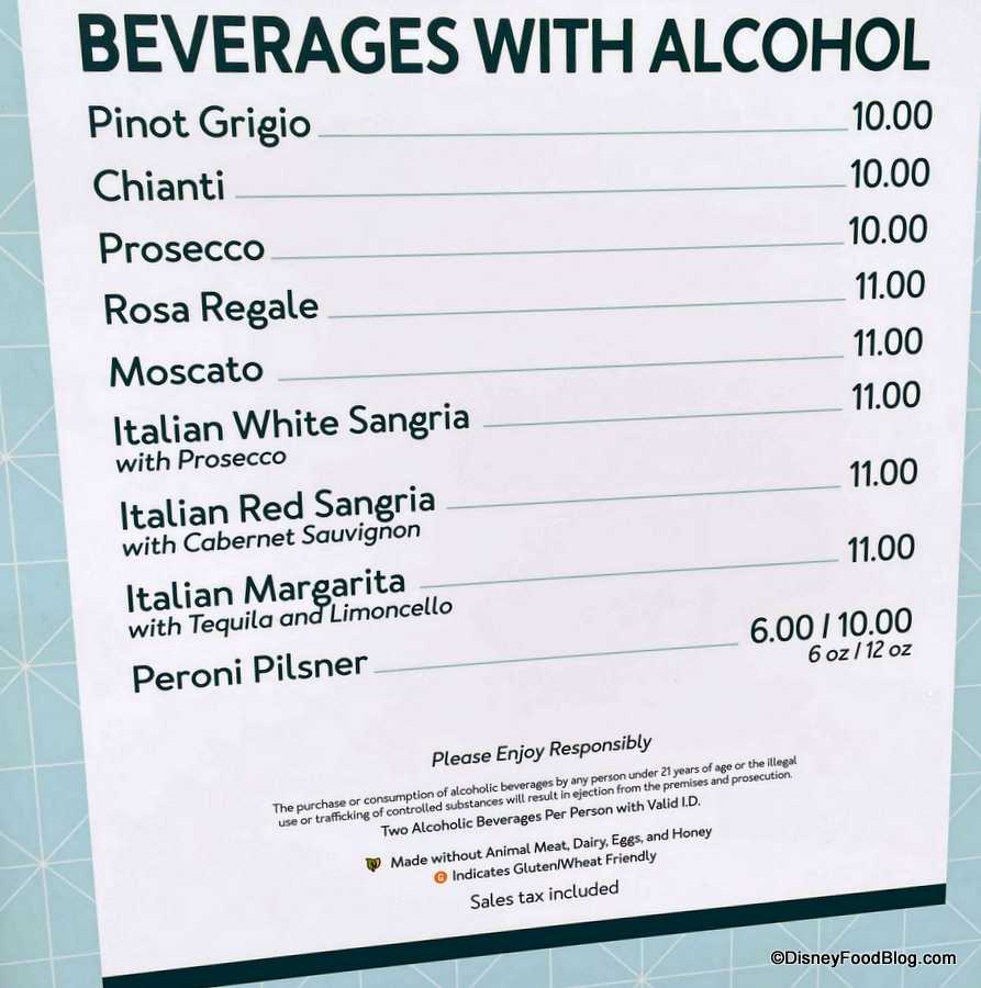 At this booth, you’ll also find an Italian Margarita with Tequila and Limoncello for $11. This is an item we most recently spotted at the Primavera Kitchen booth for the 2021 EPCOT Flower and Garden Festival, but we also had it at the Italy booth at last year’s Food & Wine Festival.