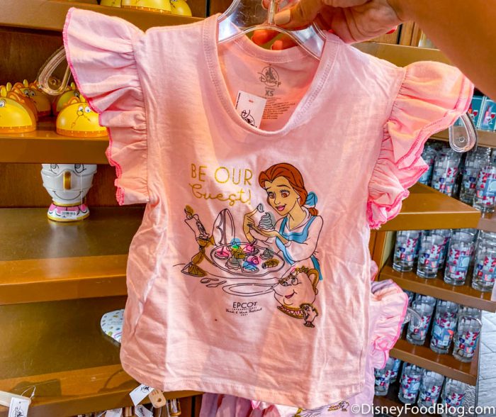 And a girls’ Belle Be Our Guest T-Shirt in pink with ruffled sleeves for $24.99.