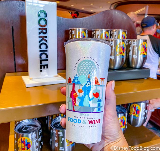 This Corksicle Tumbler from Shimmering Sips is $21, and really cute. This exclusive 2021 EPCOT Food and Wine Festival souvenir is located at the Shimmering Sips Booth!