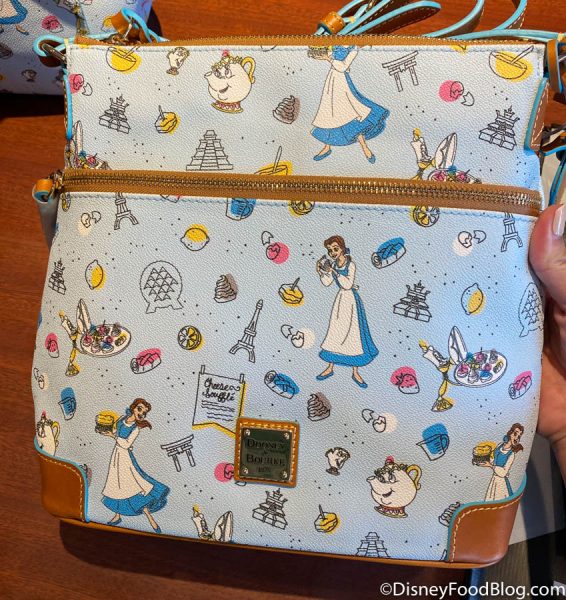 This Dooney and Bourke Crossbody Bag has the Be Our Guest print with Belle, iconic images from EPCOT, and of course food for $198!
