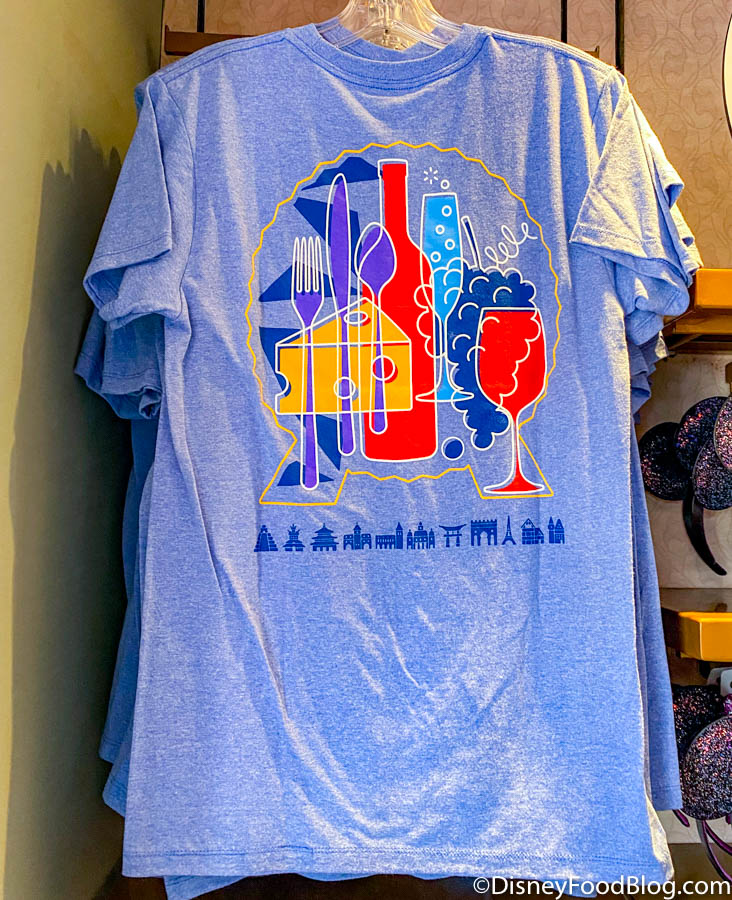 There’s a Festival Logo T-Shirt for $29.99, with cutlery coming of the front pocket and “Celebrating EPCOT International Food and Wine Festival 2021” printed on the pocket…