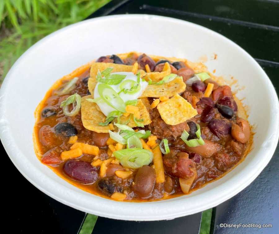 The Three-Bean Chili is really good! If you’ve ever sat down to watch a football game with a bowl of chili in hand, then just picture that but with Impossible meat and in Disney World! We were very impressed with the flavor of the Impossible meat in here and just how easily it fools you into thinking it’s ground beef.