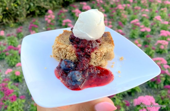 Speaking of other snacks, if you’re looking for something to munch on, this booth is once again serving up the Banana Bread with Mixed Berry Compote! This is a plant-based option, so if you’re looking for plant-based dessert options or are traveling with others who are looking for plant-based sweets you can stop here to grab this.
