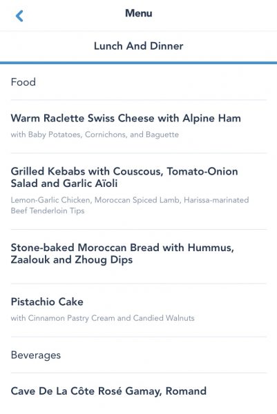 Then, we noticed another odd occurrence on the menu for Tangierine Cafe — Flavors of the Medina. Here, there was one item out of place…the Warm Raclette that so famously belongs to The Alps booth! Everything else seemed to be in order though.