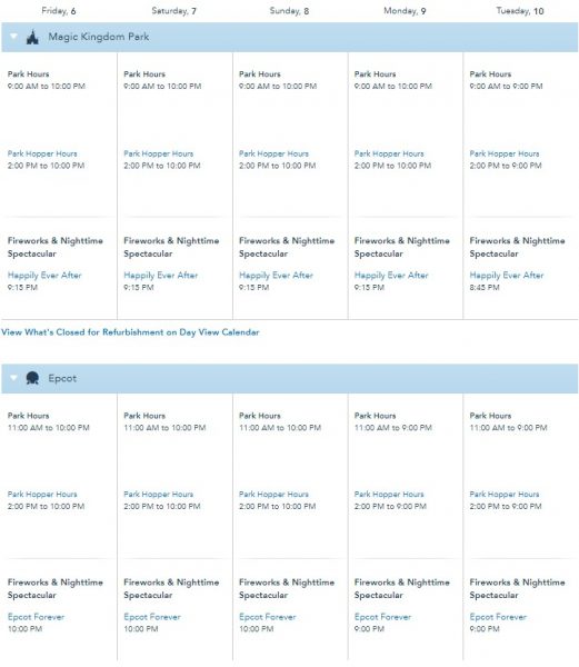 EPCOT Forever has an hours change as well. The show has been running at 10PM each night this month but in August the schedule will change. Monday through Thursday nights, EPCOT Forever will run at 9PM. Friday through Sunday nights, the show will continue to run at 10PM in accordance with park hours.